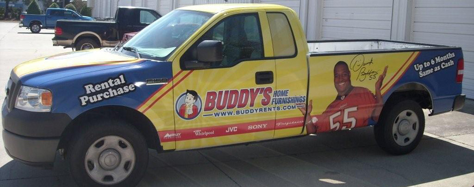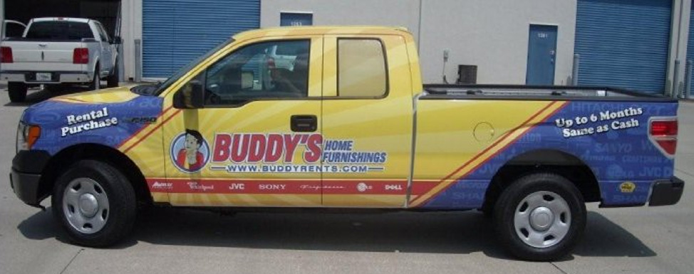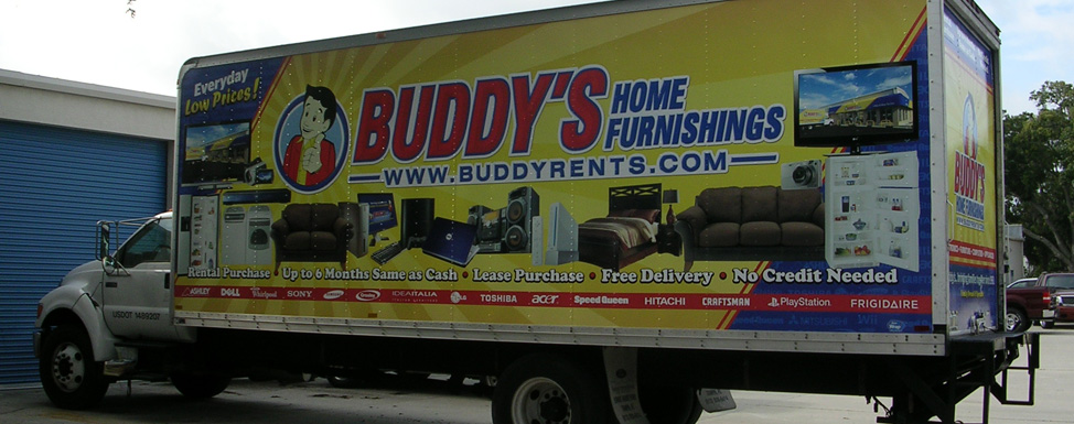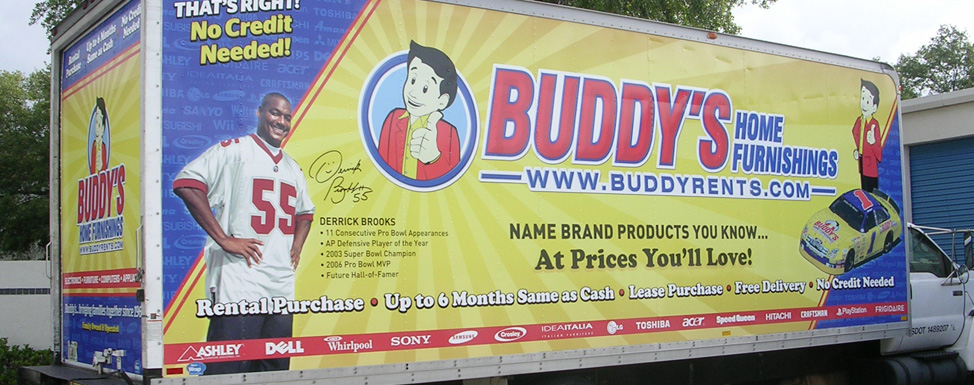 In 2008, Buddy’s Home Furnishing and Now That’s A Wrap/Road Signs Inc. teamed up to rebrand Buddy’s delivery and marketing vehicles. The two companies worked closely to ensure that the rebranded vehicles would be eye-catching, and would deliver the message needed to reach out to new customers.