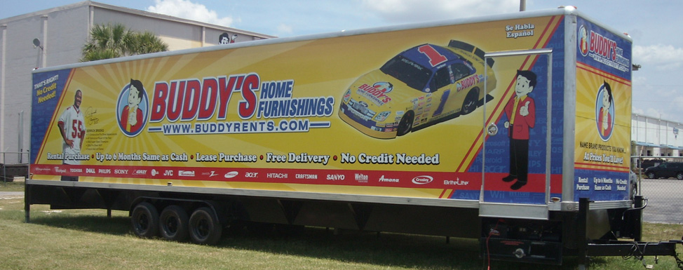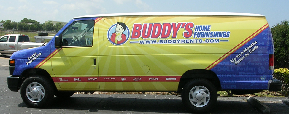 In 2008, Buddy’s Home Furnishing and Now That’s A Wrap/Road Signs Inc. teamed up to rebrand Buddy’s delivery and marketing vehicles. The two companies worked closely to ensure that the rebranded vehicles would be eye-catching, and would deliver the message needed to reach out to new customers.